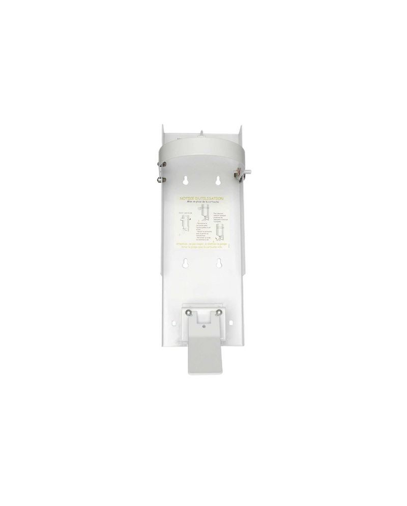 - Le distributeur de savon Alphapak 5000 est conçu en métal peint blanc.