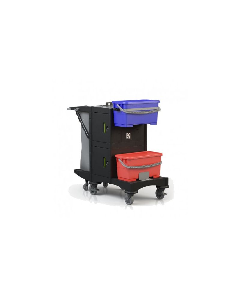 Chariot avec roues Ø 125 mm avec pare-chocs, une poignée conduite et 2 supports manches.