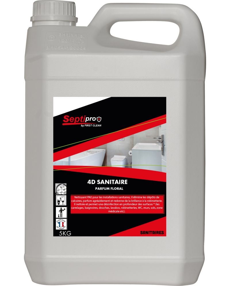 C’est un nettoyant PAE pour les installations sanitaires, il élimine les dépôts de calcaires, parfume agréablement et redonne de la brillance à la robinetterie. Il nettoie et permet une désinfection en profondeur des surfaces * (les carrelages, baignoires, douches, lavabos, robinetteries, WC, murs, sols, zone médicale etc).